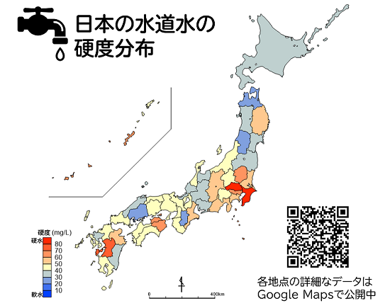 水道水の味は日本全国同じ?水道水の硬度分布の可視化の試み