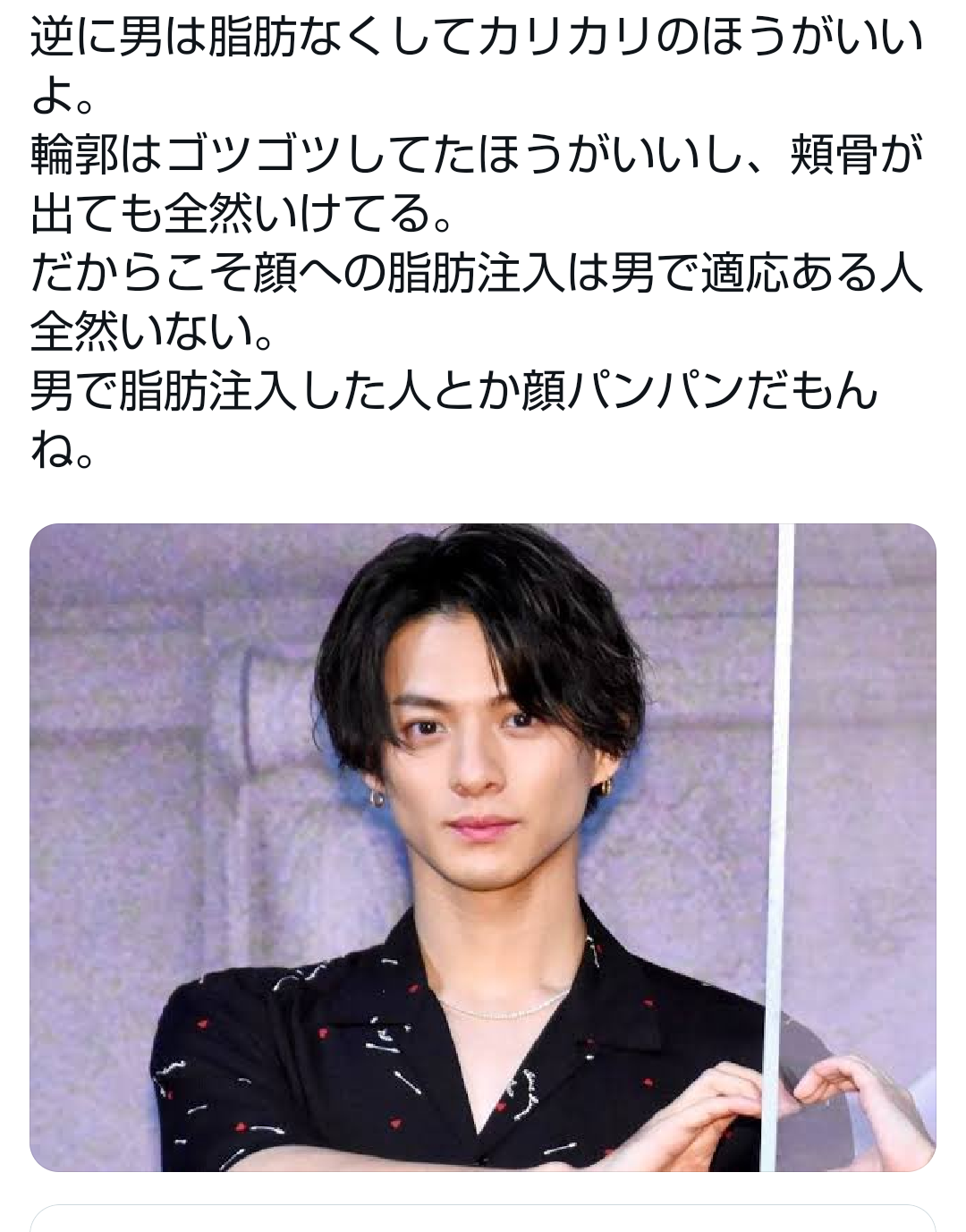 海外の男性ファッションモデルみてると必ずげっそり頬がこけてるんだけどそういう美の基準でもあるんかね