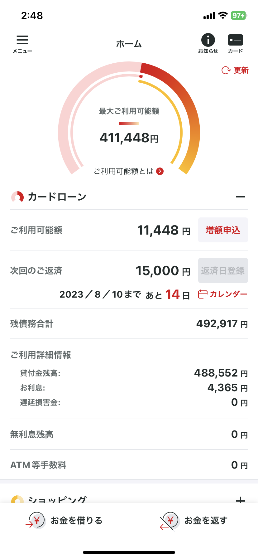 怖すぎて13万しか借りてないが2ヶ月でやめた