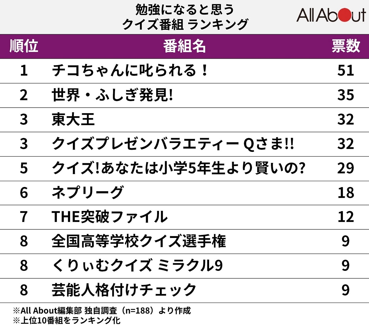 「クイズ番組に関するアンケート」を実施しました。今回はその中から、「勉強になると思うクイズ番組」ランキングを紹介します!