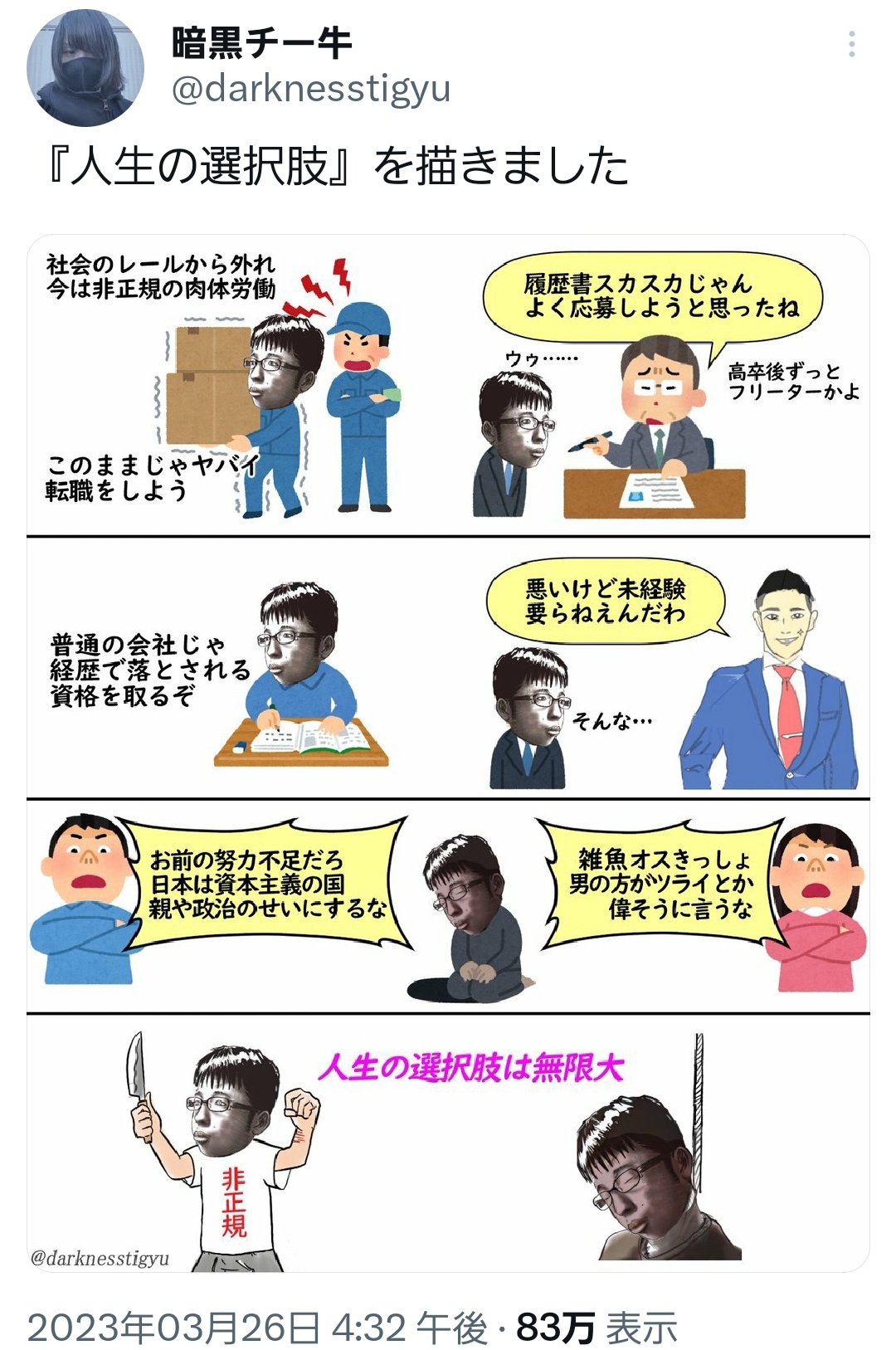 【画像】チー牛弱男の人生の選択肢wwwwwww
