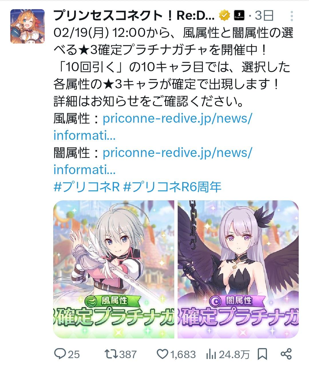 ちなみにプリコネも6年目で急に属性付与したあと確定ガチャを連発