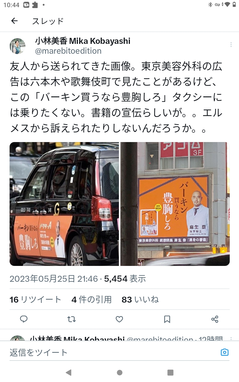 デカパイしか似合わんからバーキン買う前に豊胸しろっていう美容整形の宣伝