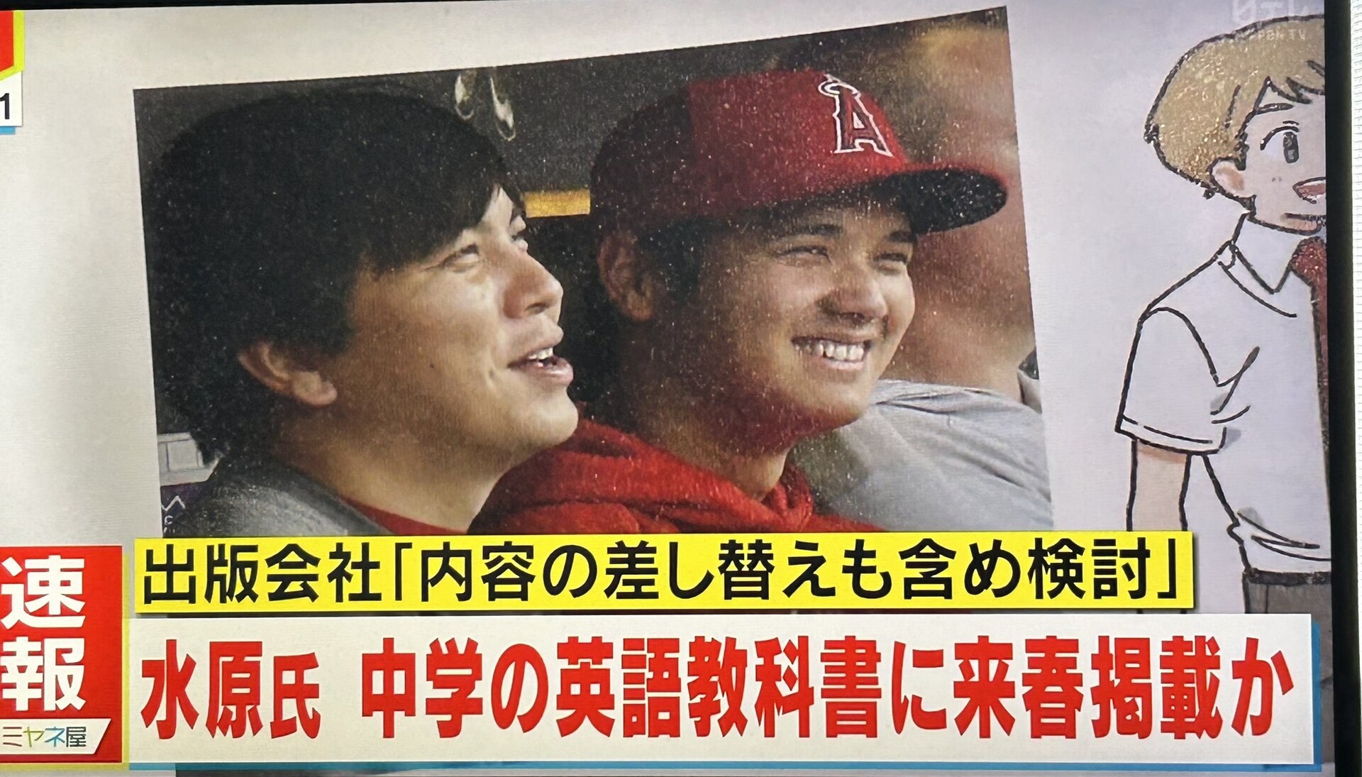 水原一平氏が中学校の英語教科書に登場「He helps Otani 」大谷選手との物語掲載の教科書が検定通過|FNN