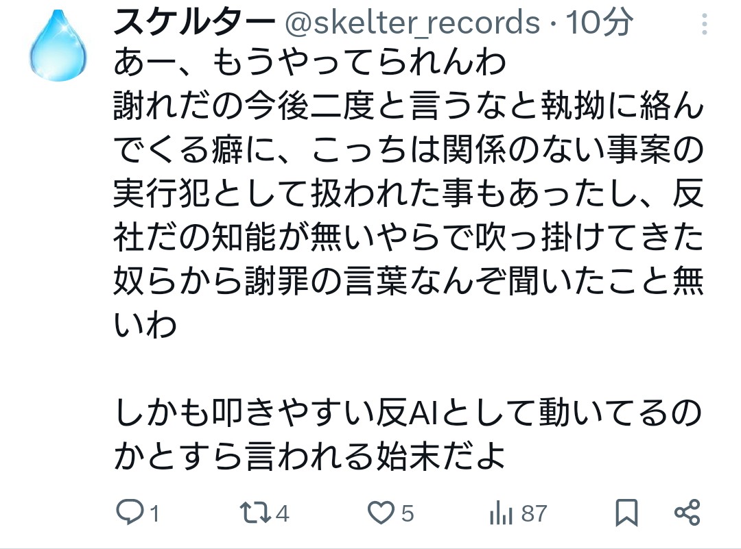 こいつは謝ったのに反AIは1人もごめんなさいしないんだろうな