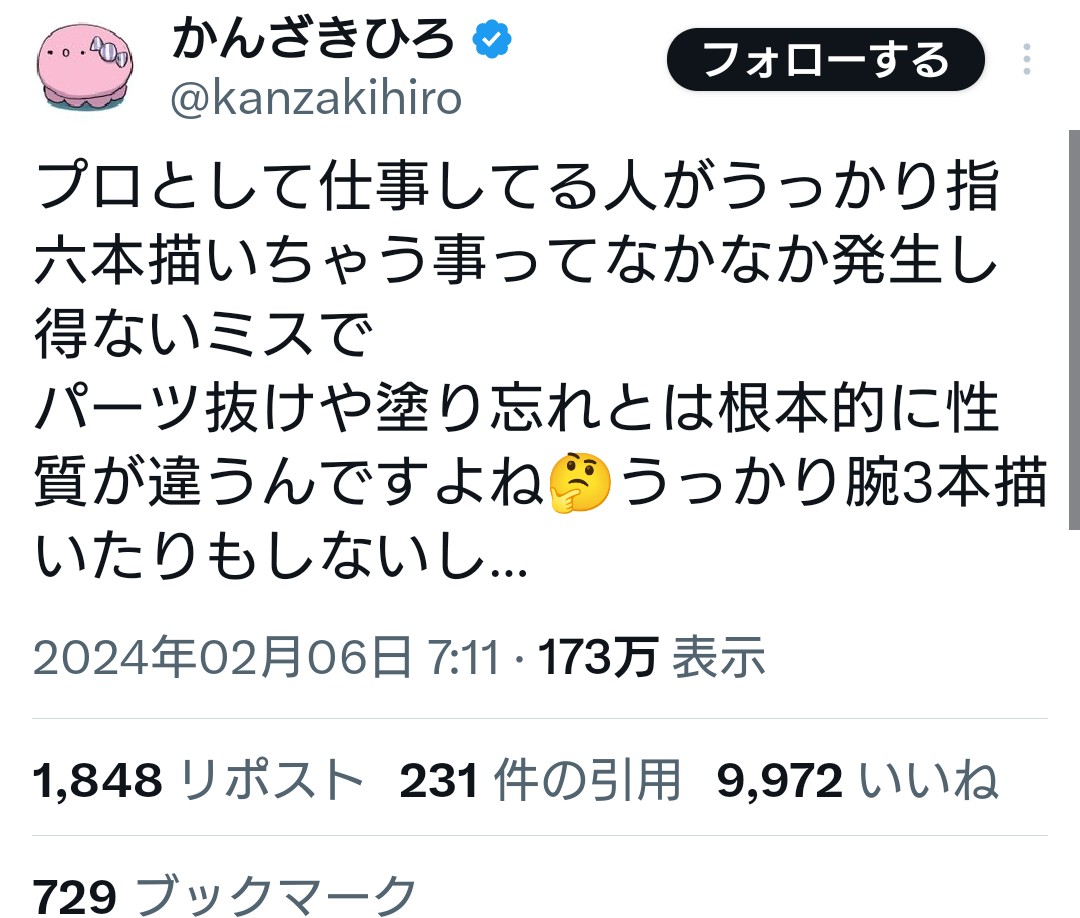 指の本数が違うなんてプロでもそこそこやるやん