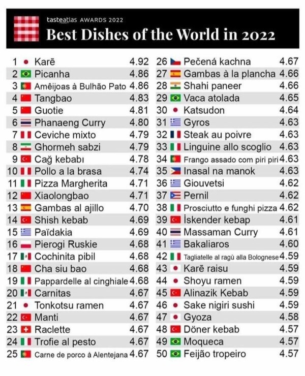 自国以外の料理をネットで投票した結果だってさ
