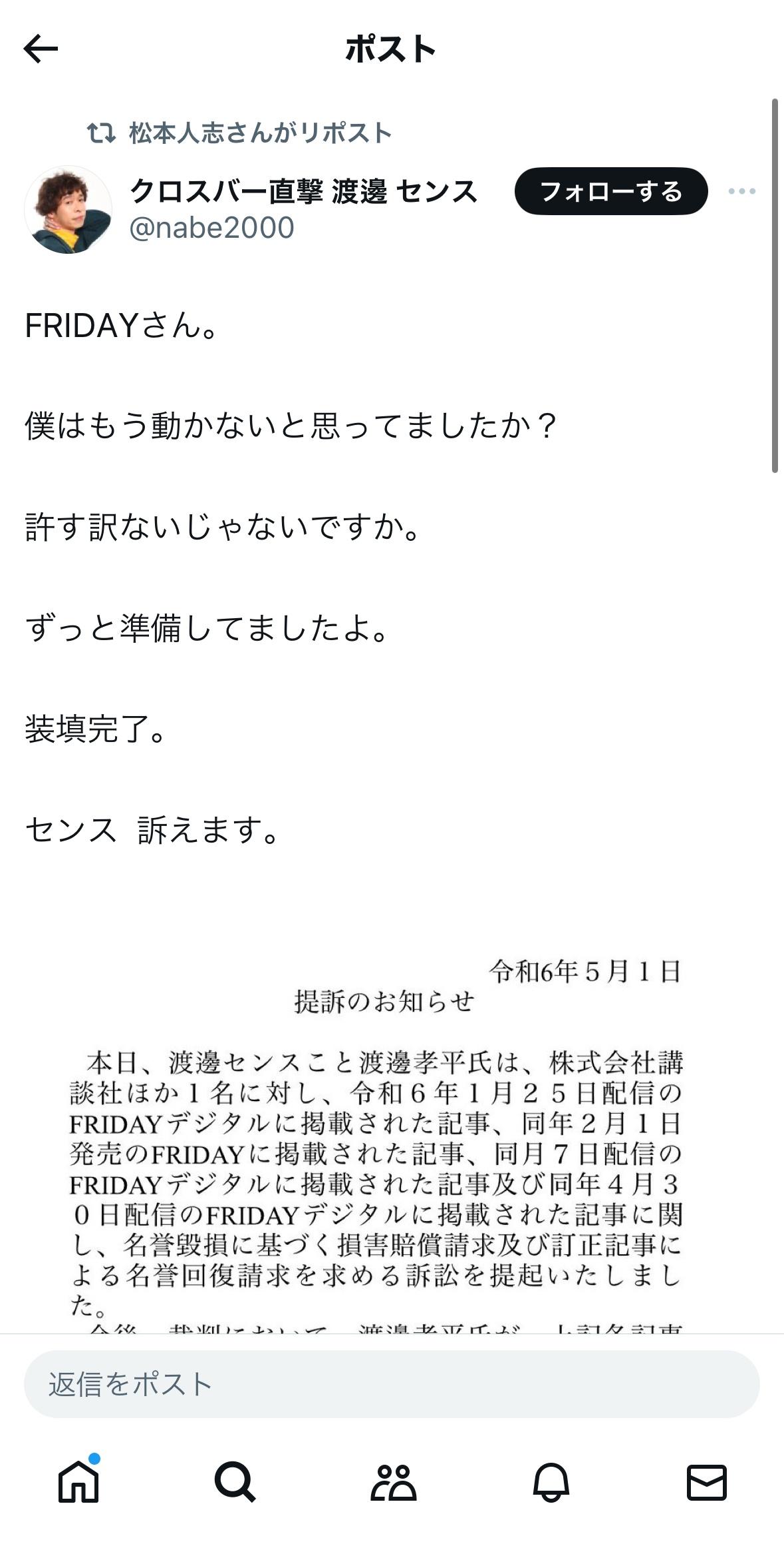 渡邊って誰やねんwしかも文春じゃなくてフライデーかよ番外戦闘すぎるw