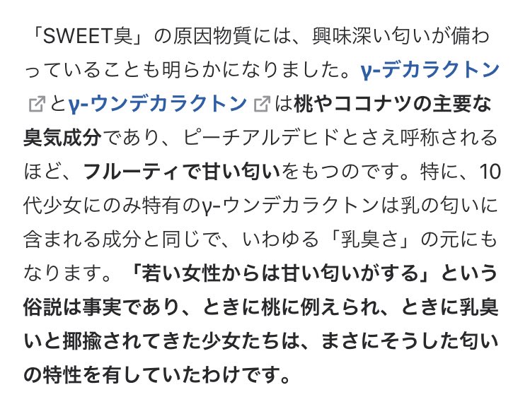 このラクトンの匂いがする石鹸とか売ってて一時期めっちゃ流行った