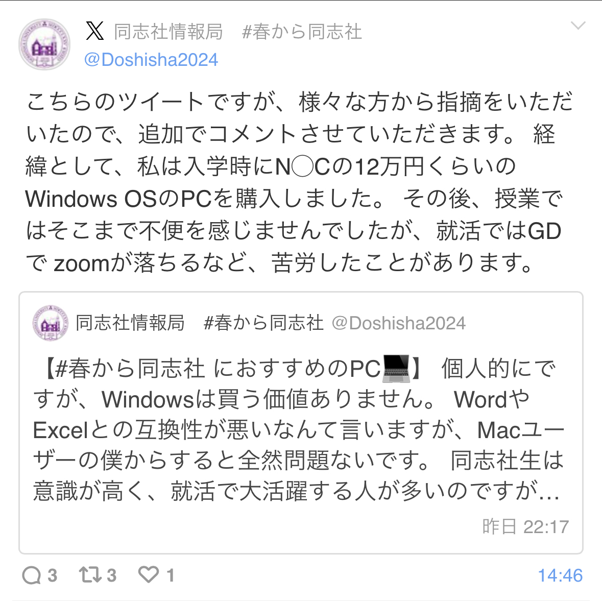 こんなんやから同志社にしかいけんかったんやな