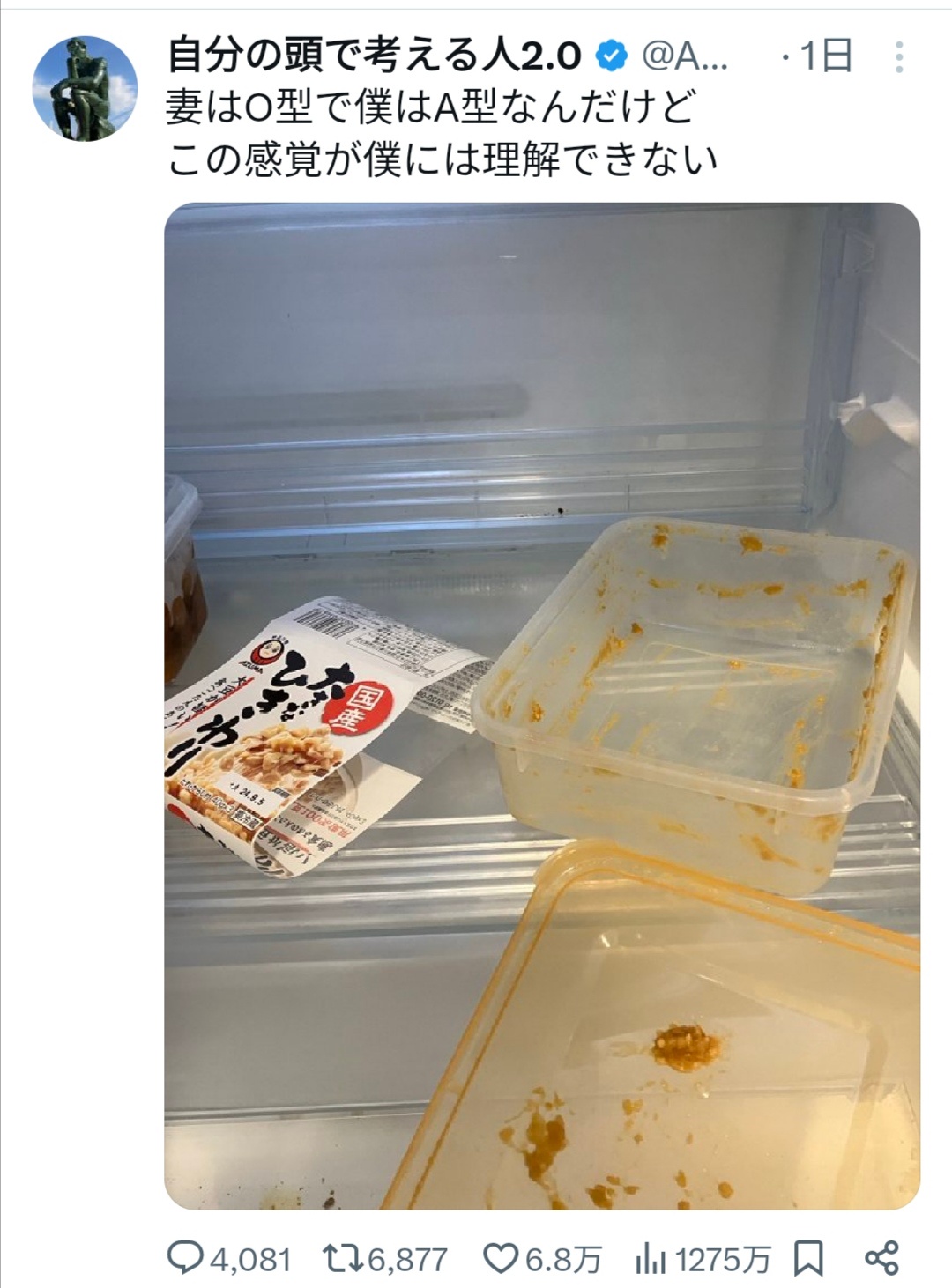 どういう事?食べた後の容器を冷蔵庫にいれてんの?