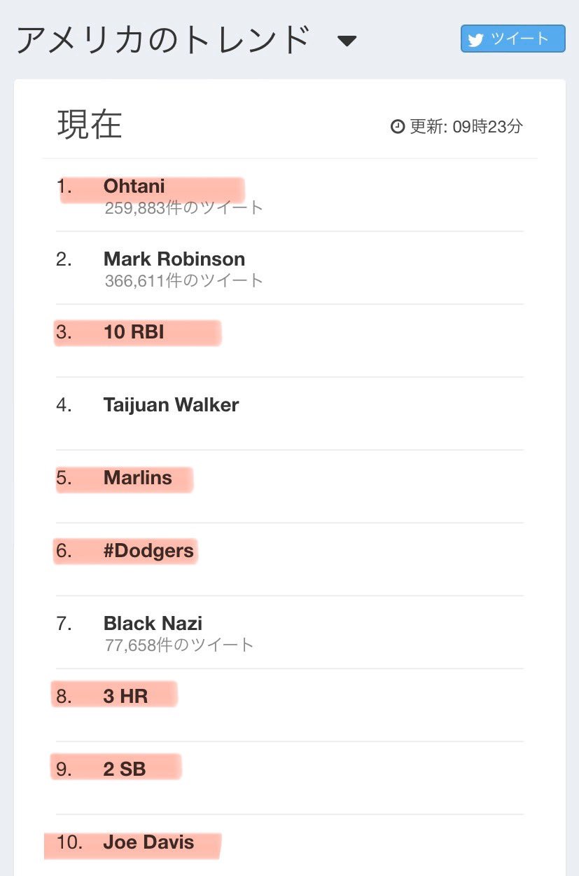 アメリカでトレンド上位独占