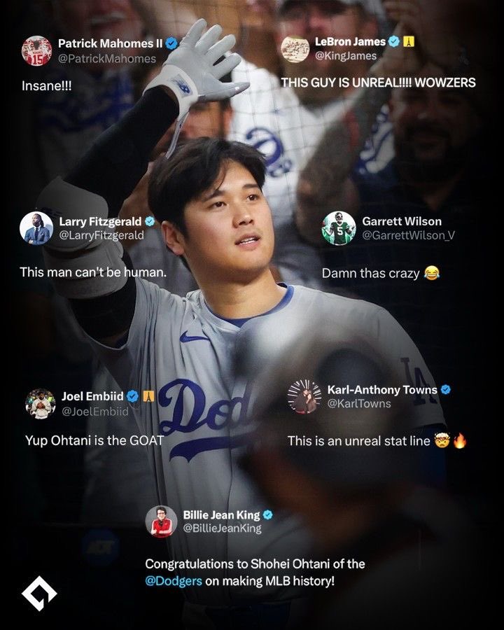 ・NFLスーパースター トム・ブレイディ「ショウヘイ!おめでとう!初の50-50入会者だね! なんという偉業なんだ。でも君には、今後もっと大きな目標があることを知っている。ポストシーズンの幸運を祈っているよ」