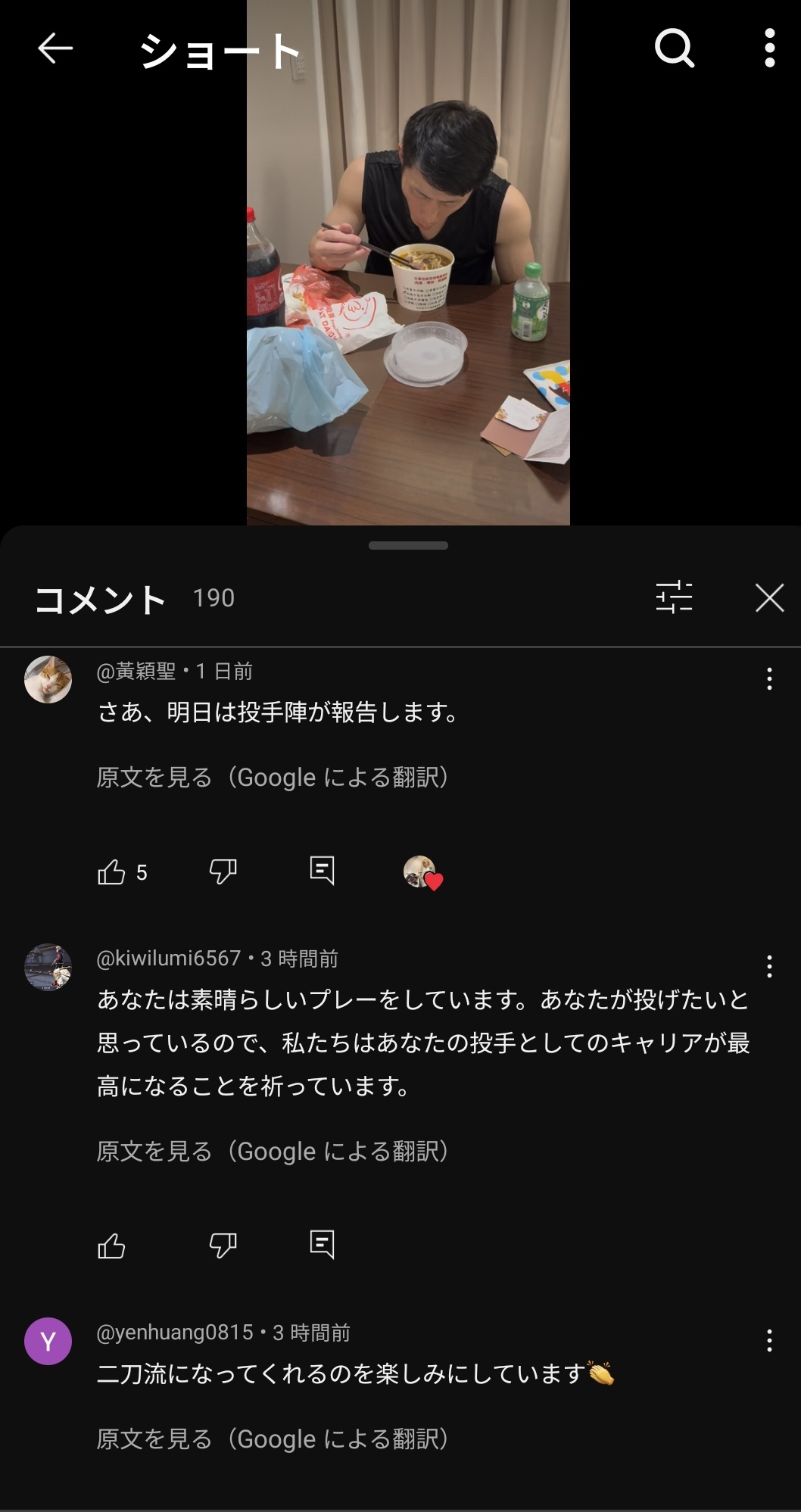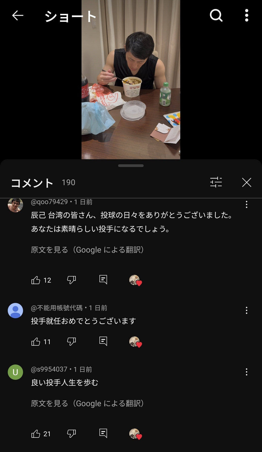 辰己が投球練習する2年前の動画、なぜか漢字コメント増える
