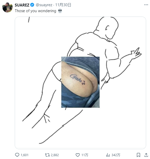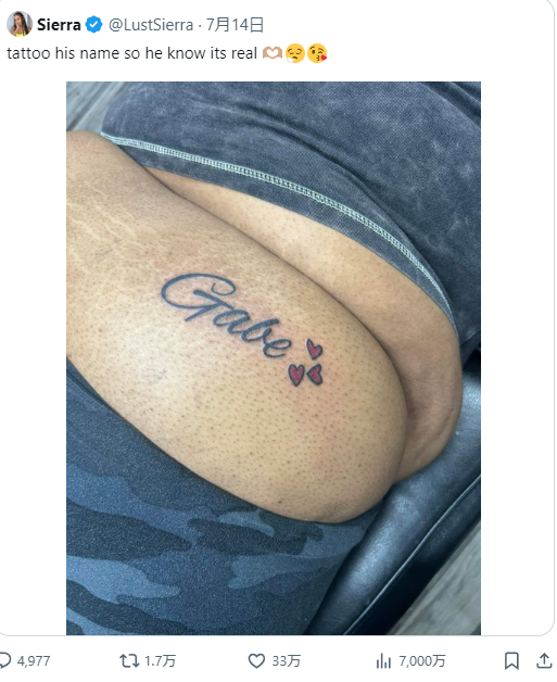 【画像】タトゥーを公開した女さん、一体どこの部位に彫ったのかわからず世界中が推理しだすwww