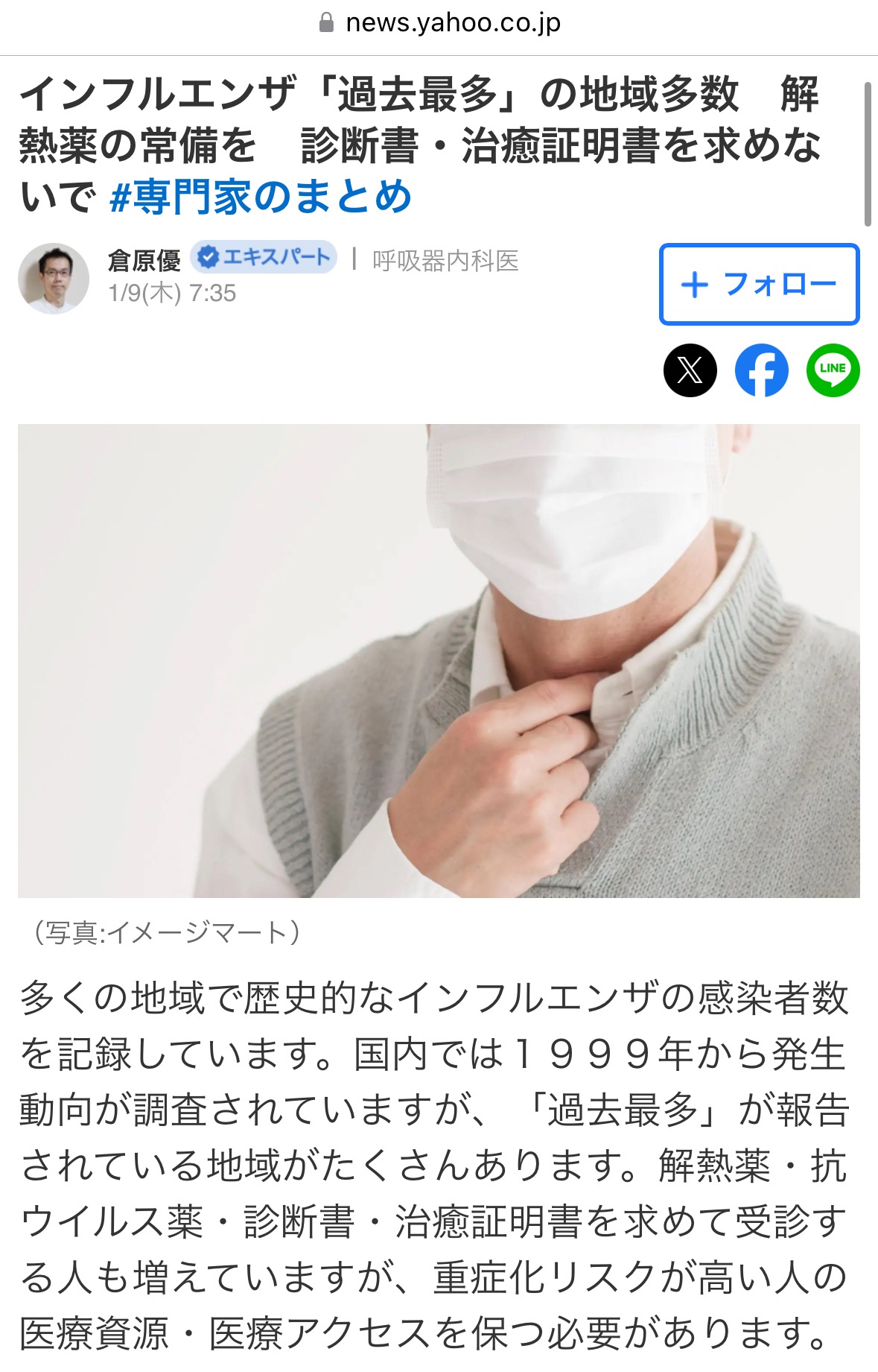 インフルエンザ「過去最多」の地域多数 解熱薬の常備を 診断書・治癒証明書を求めないで #専門家のまとめ