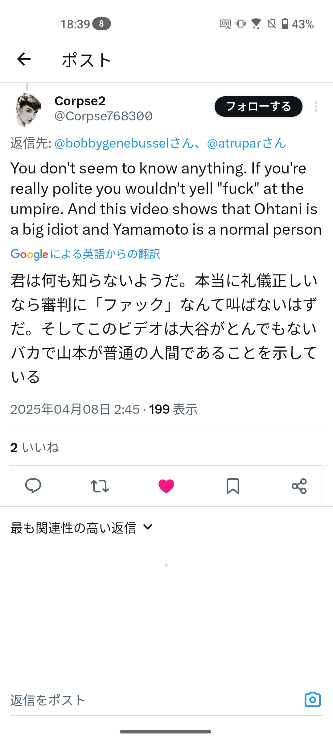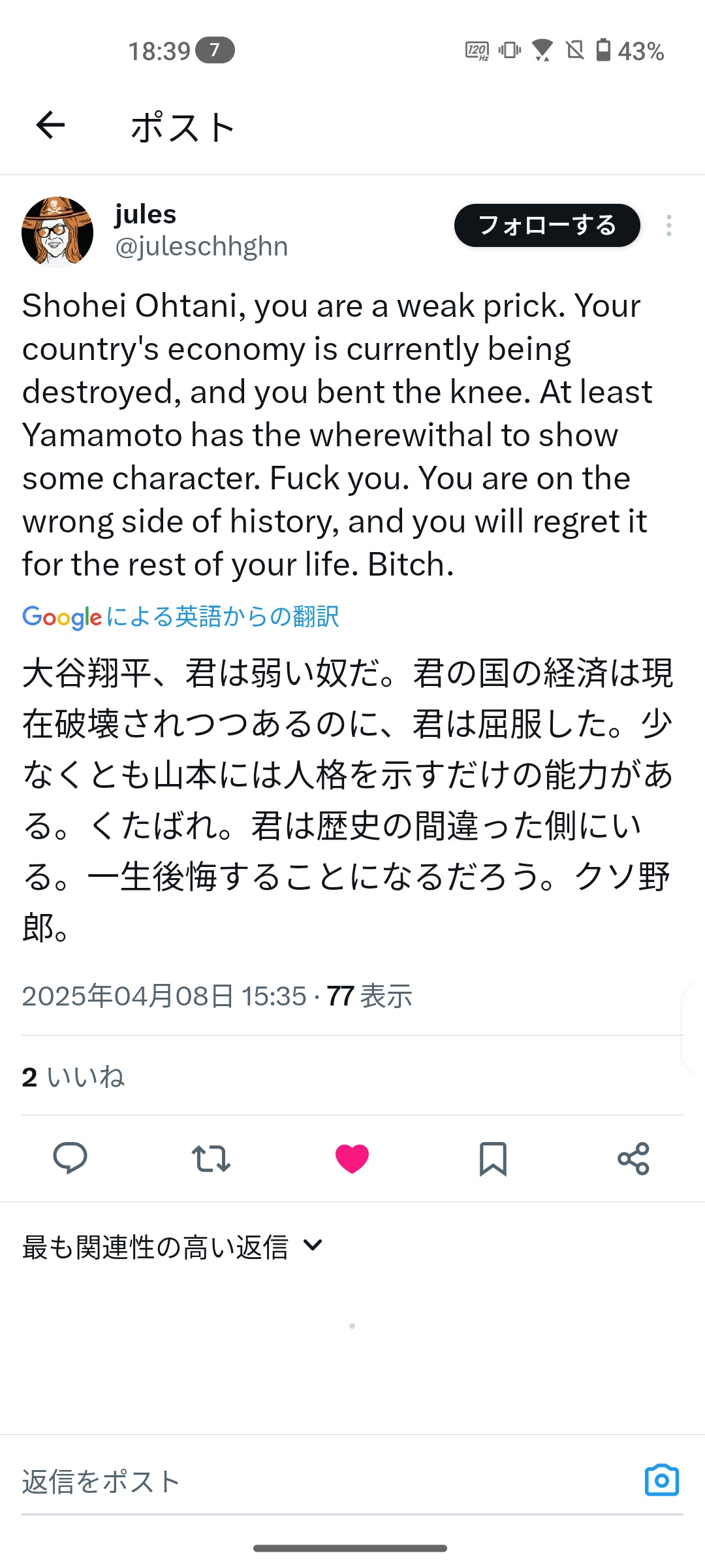 一方で大谷はトランプに媚びた権威主義者と見られて炎上中