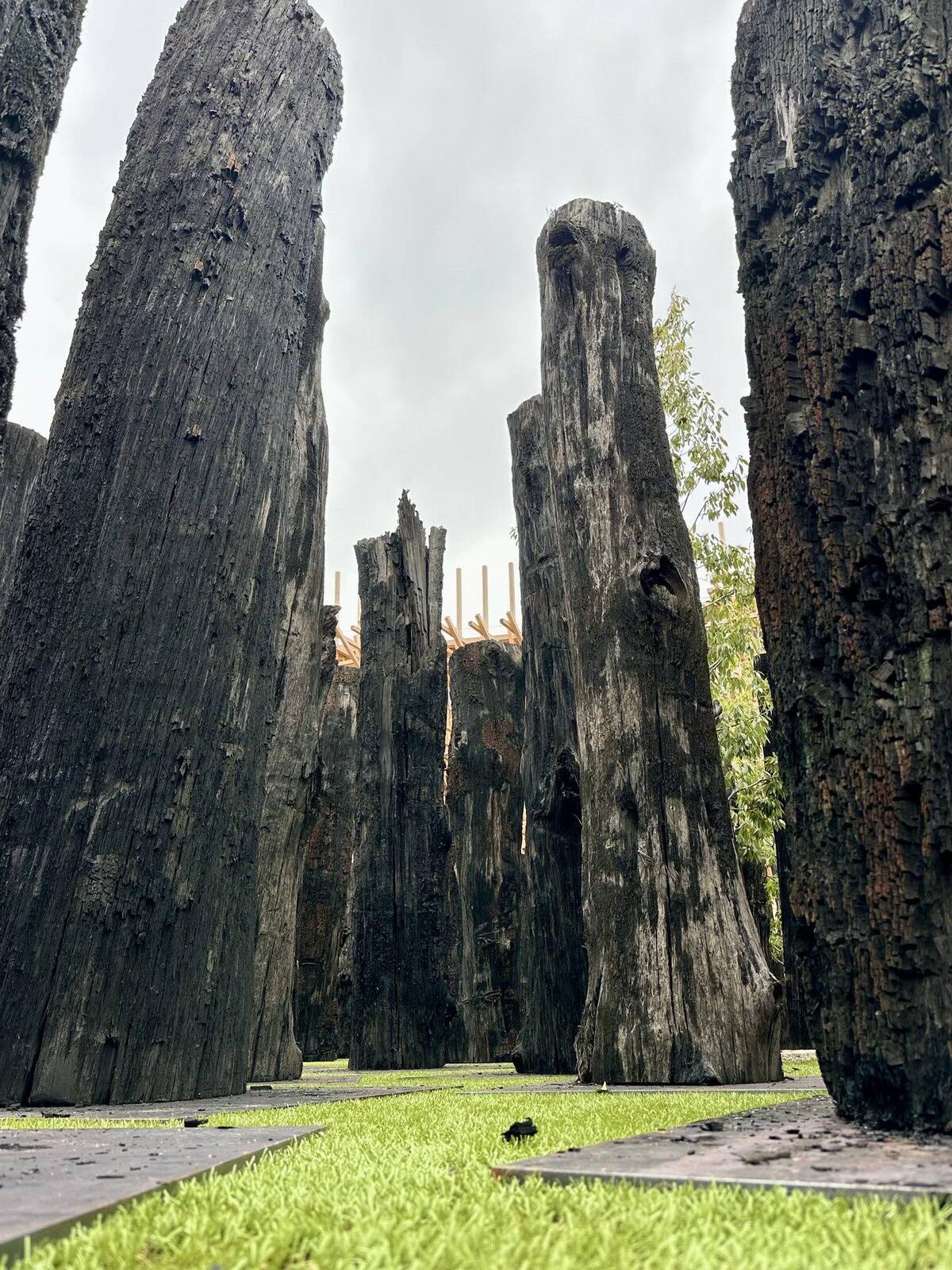 焼け焦げた建材みたいで万博リングと映ると不穏だなぁ