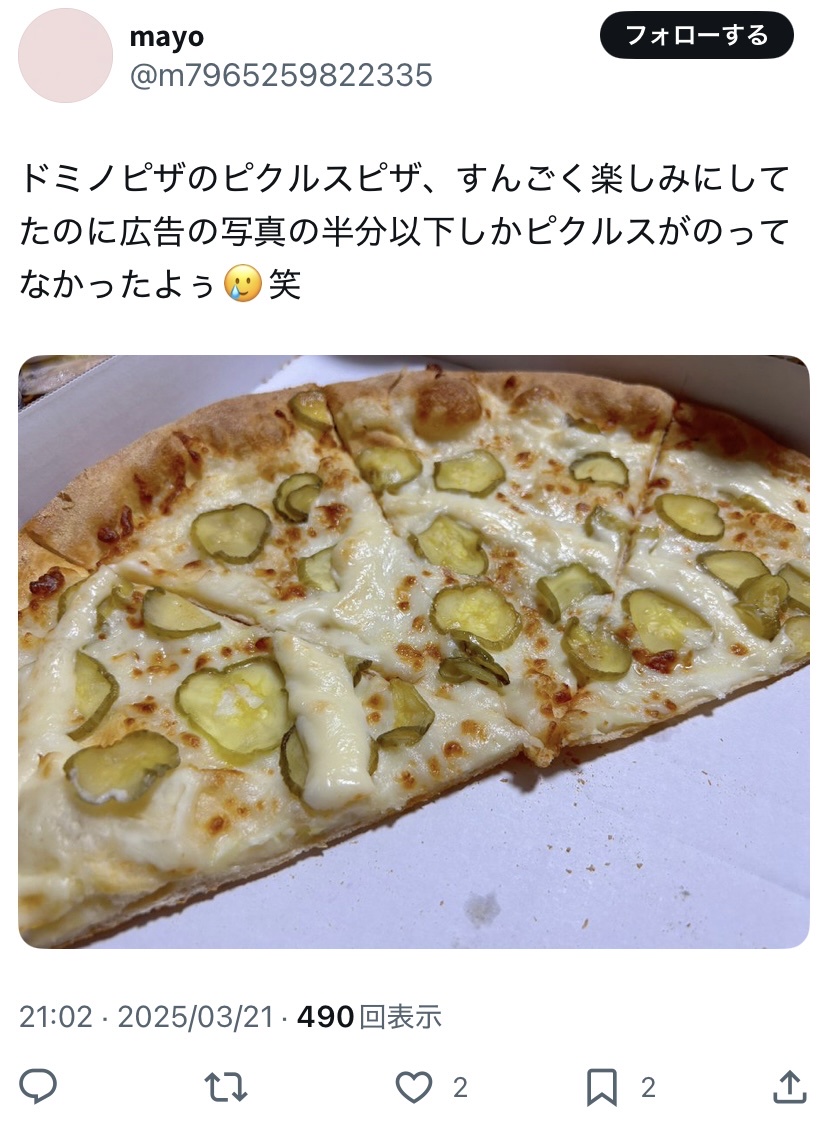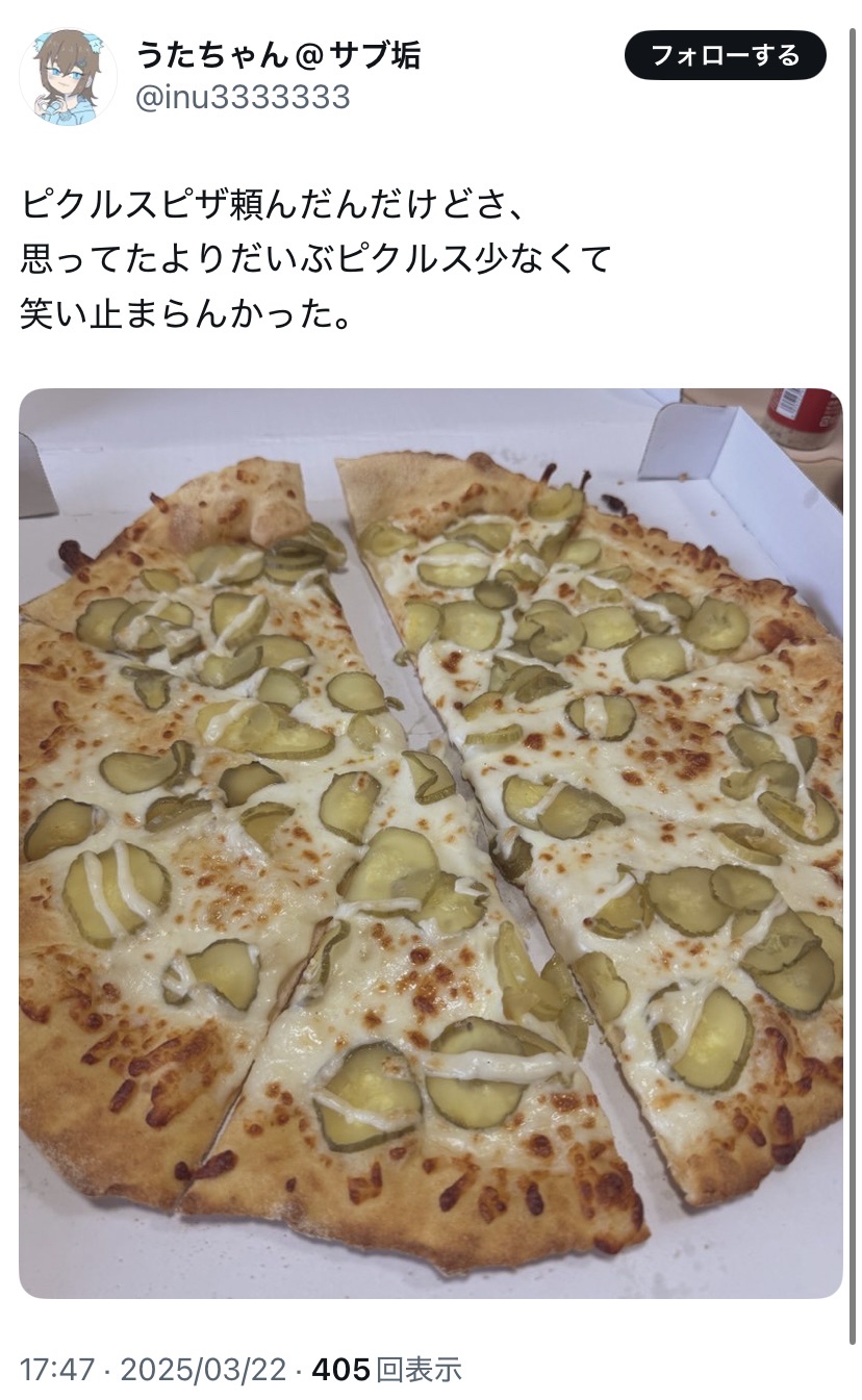 紛うことなくピクルスピザに見えるが