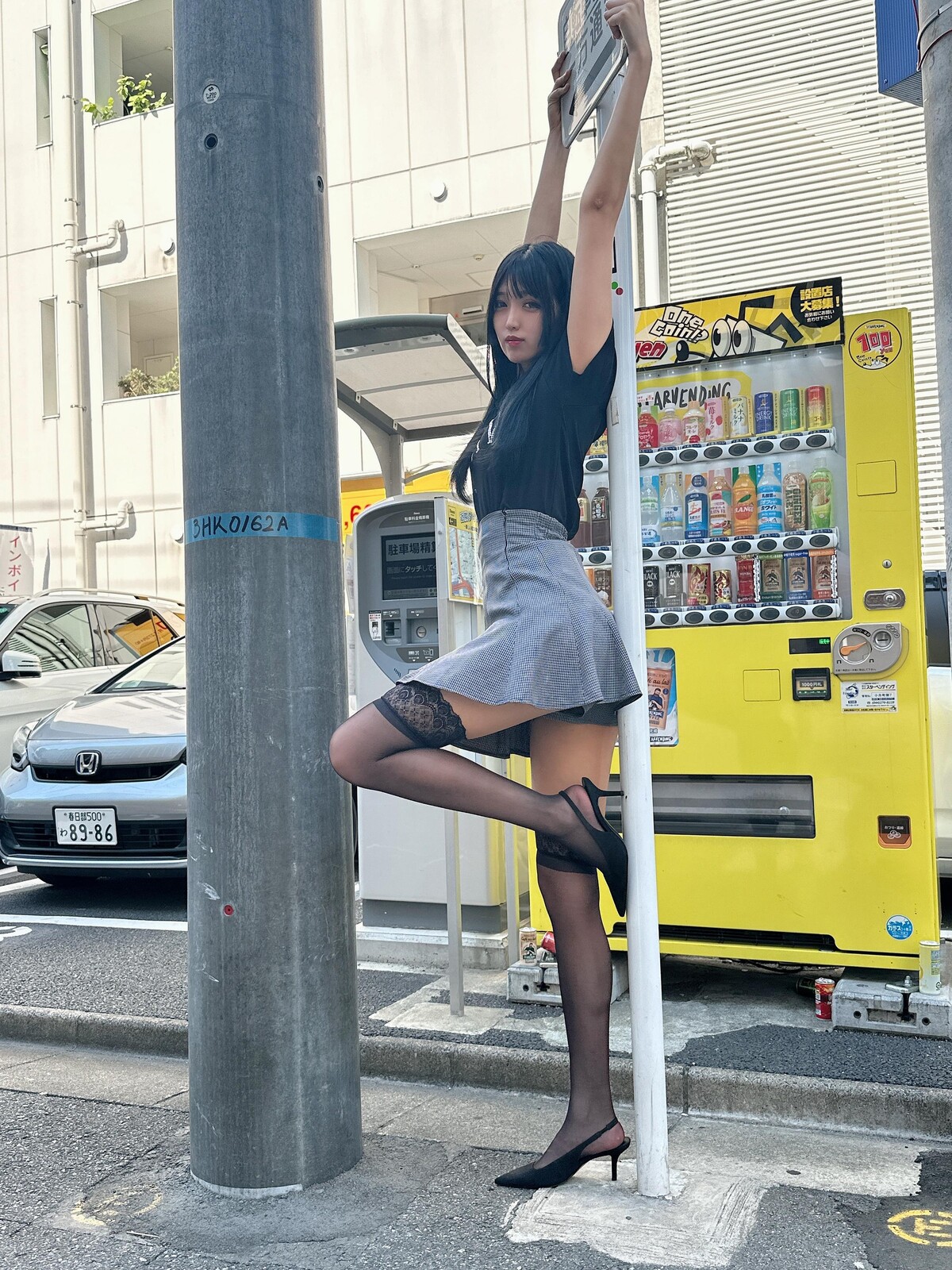 1枚目自販機って183cmなのに背伸びして同じ?