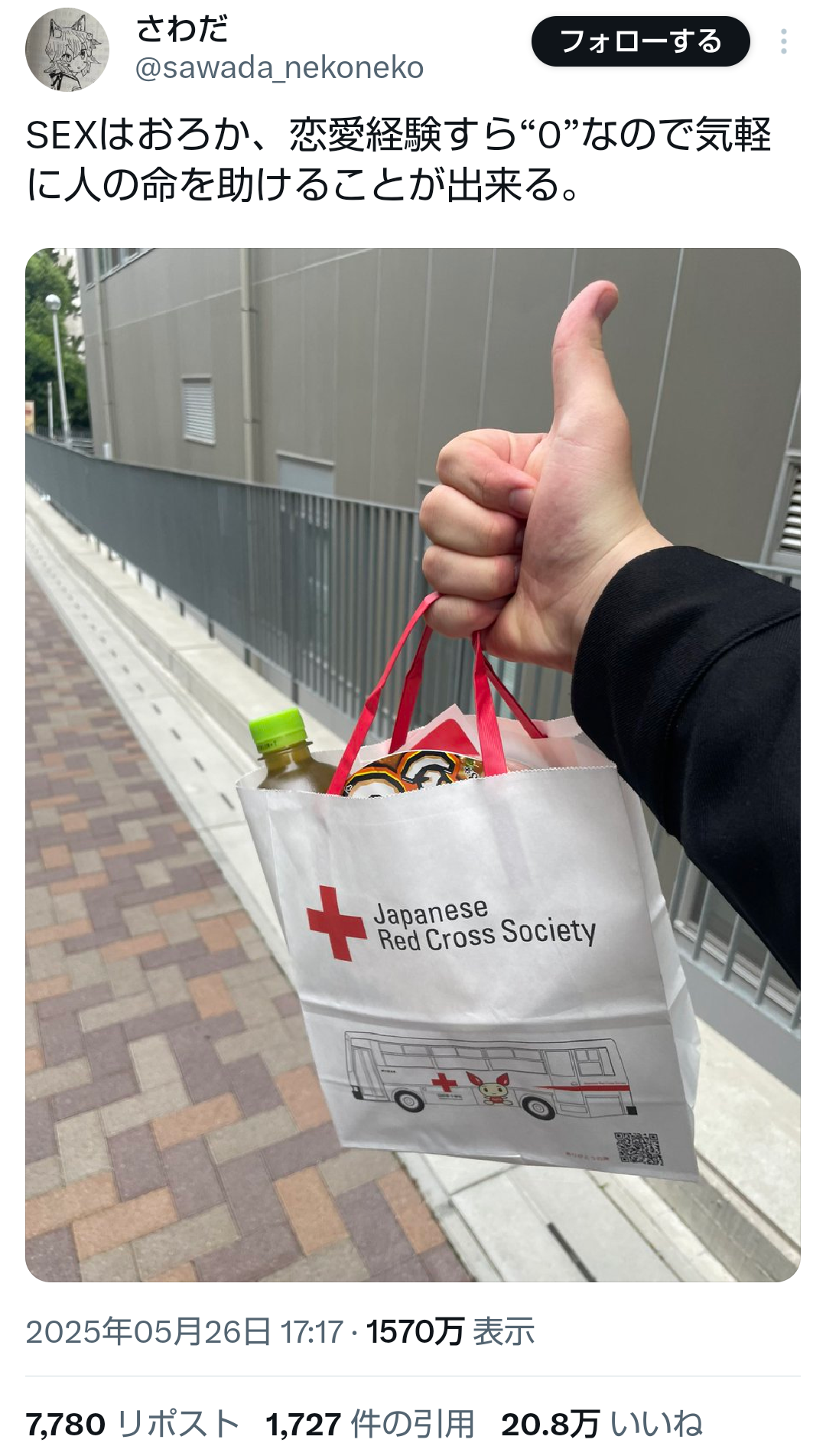 赤十字「あ!そこのお兄さん!童貞ですか?献血お願いします!」ってこと?