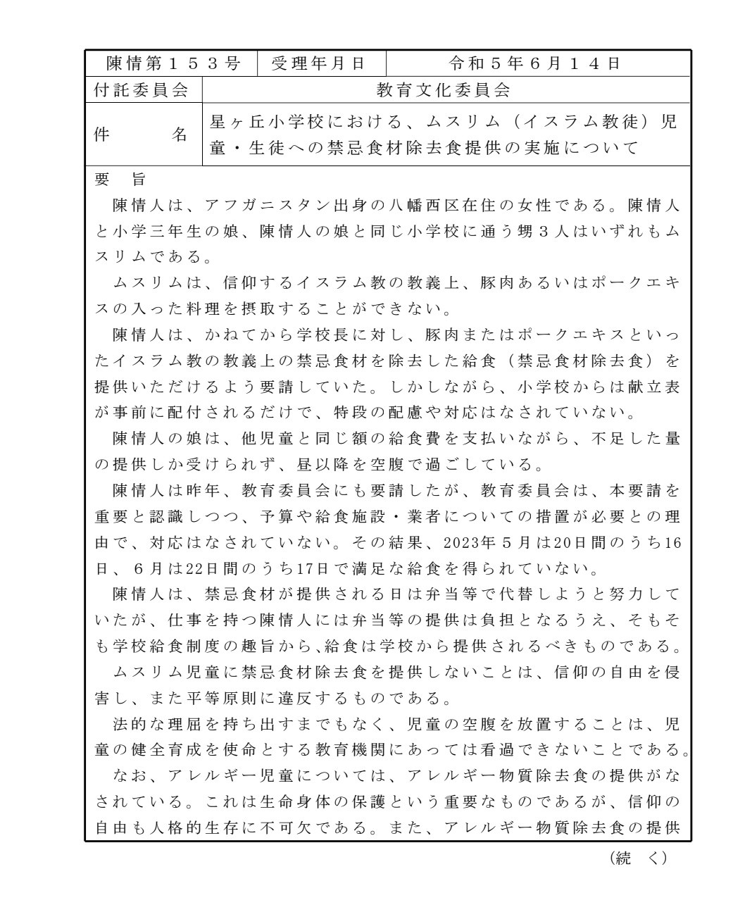 もうめんどいからイスラムのやつに給食作らせろよ