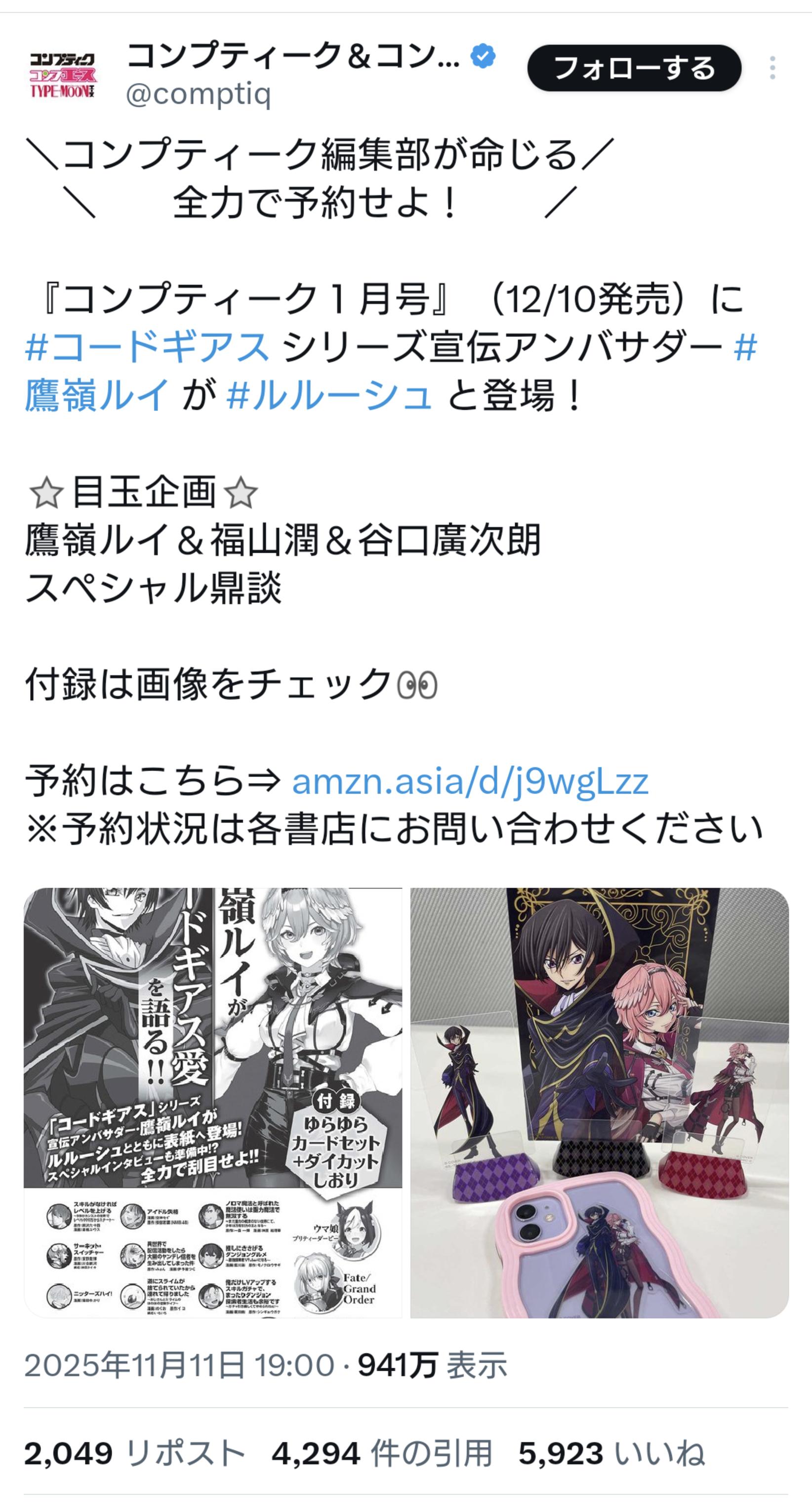 ただコードギアスの宣伝するだけならいいけどコラボ商品とかマジでいらねーよな