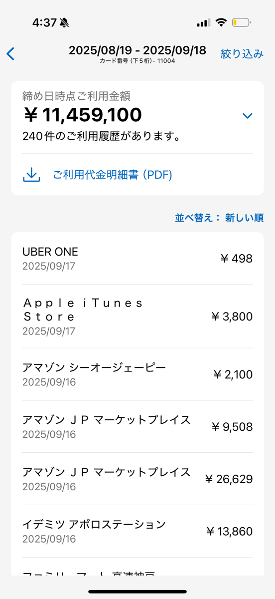 【画像】ワイ富豪の今月のカード請求額wwwww