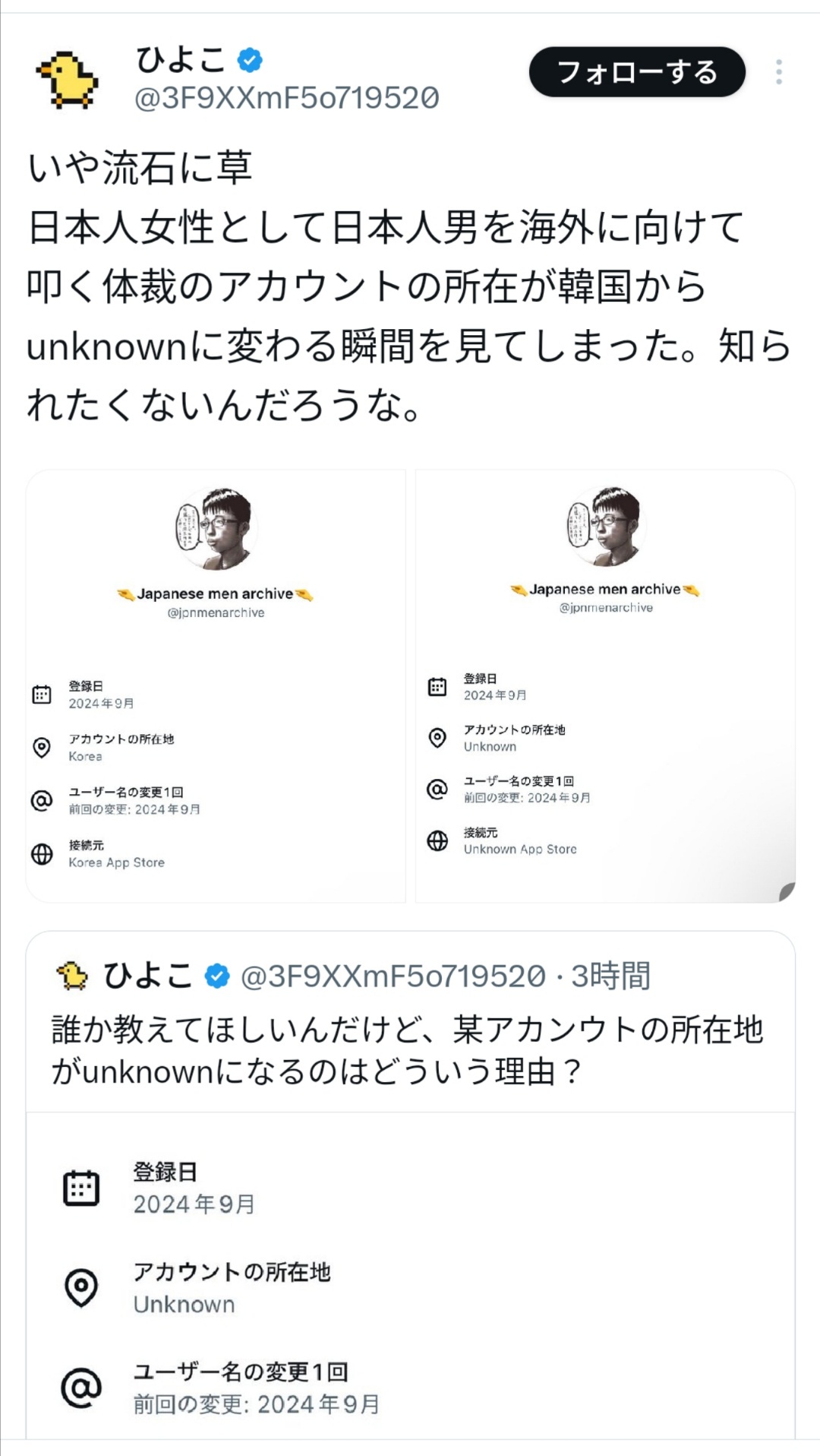 これアカウント登録時のIP所在地だから別におかしくはないんじゃね