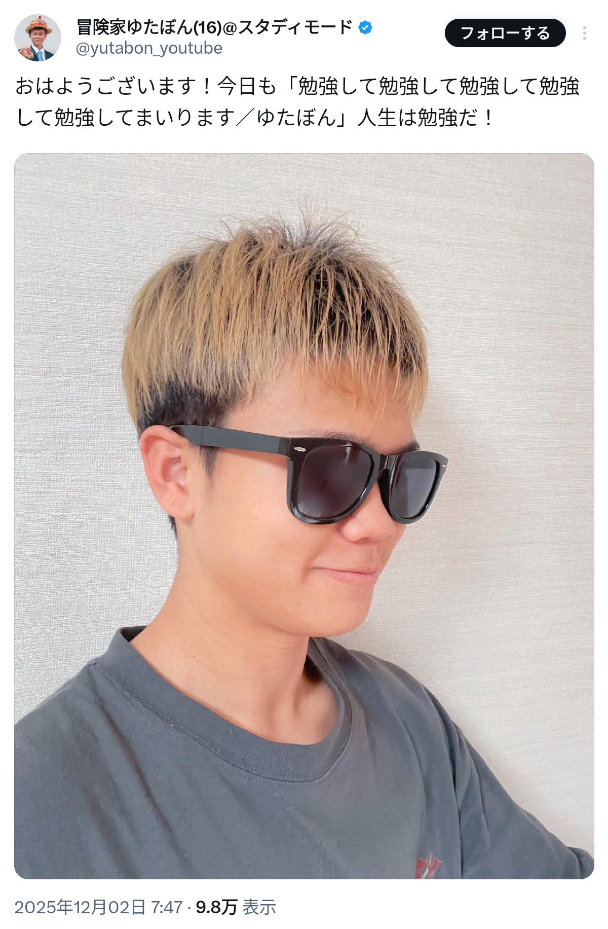 最近のゆたぼんサングラスしとるなと思ったら二重整形の腫れを隠しとったんやな