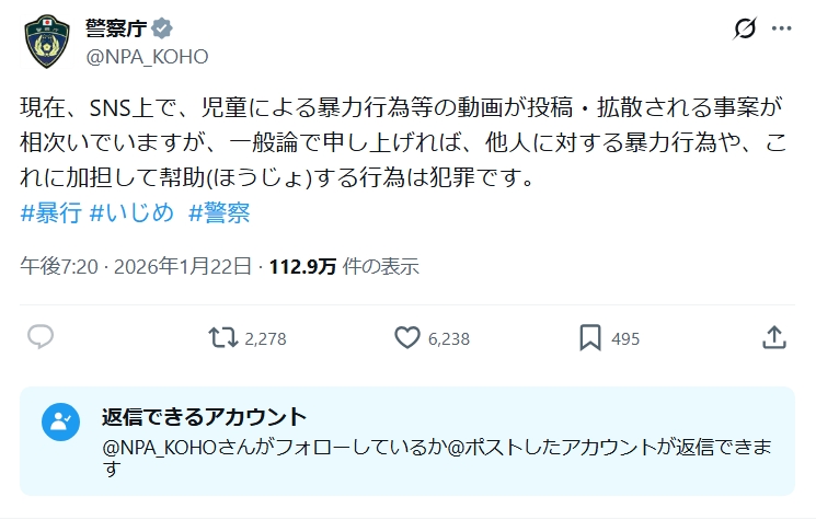 警察庁で検索したらボコボコに叩かれててくさ。俺らの勝ちやな