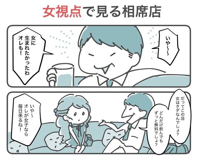 女は飲食無料で、男が倍くらいの金額出して食事メニュー頼む